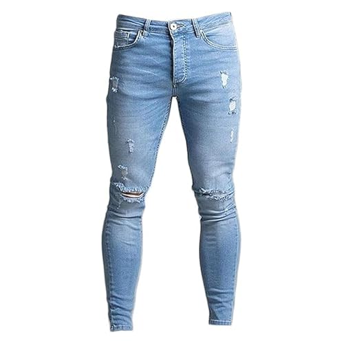 HOT ! Men's Light Blue Slim Fit Ripped Jeans Distressed Denim Pants Comfortable for Work or Weekend Outings