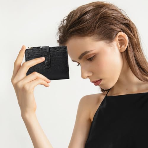 The FALAN MULE Small Wallets for Women RFID Blocking Slim Bifold Leather Womens Wallet with Zipper Coin Purse matches the description.
