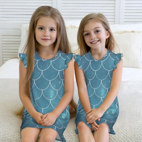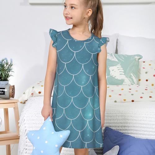 Augenstern Flutter Sleeve Nightgown Pajama Gown Blue Fish Scales Easy Pull-On Sleepwear Nightdress 6