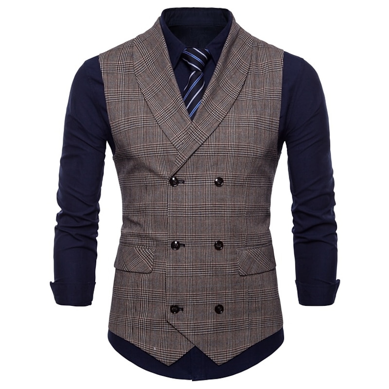 More information about Men's Vest Suit Vest Waistcoat Wedding Work Business Holiday Formal Gentle Spring Fall Polyester Plaid Shirt Collar Slim Brown Light Grey Dark Gray Vest