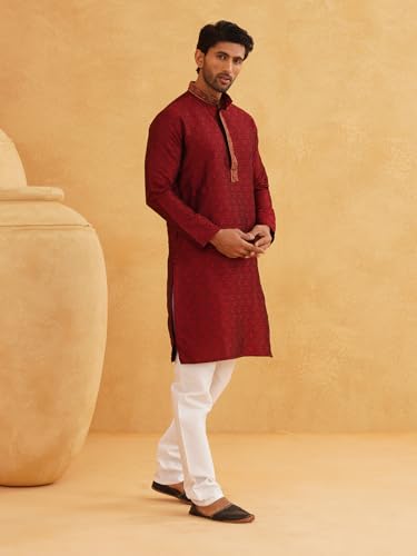 • Collar: Mandarin, Sleeves: Full, Fit type: Regular/ Comfort, Length: Knee length Kurta
