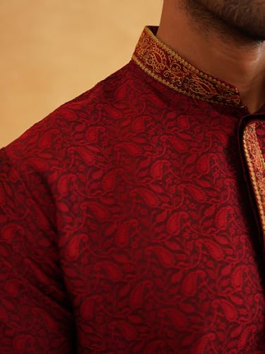 Sojanya (Since 1958 Men'S Silk Blend Gold Self Design Only Long Kurta 5
