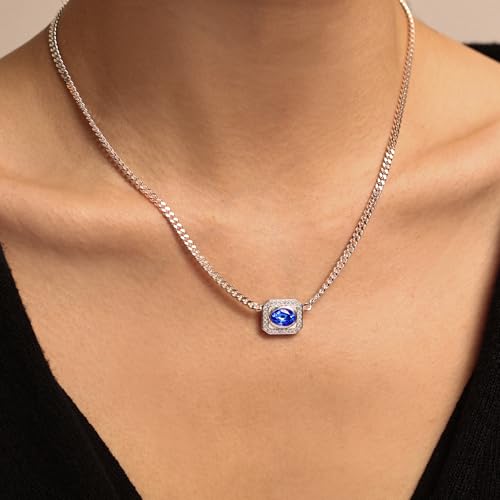 More information about Cuban Chain Necklace for Women, Blue Gemstone Necklace with Moissanite Halo, 18K White Gold Plated Sterling Silver, Women's Jewelry, Anniversary Birthday Gifts for Her