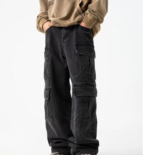 More information about Men’S Workwear Multi Pocket Jeans Mid Waist Loose Fit Wide Leg Denim Pants Casual Zipper Fly Vintage Wash Jeans