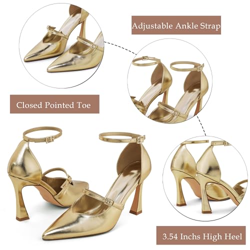 GENSHUO Women's High Heels Closed Toe D'Orsay Stiletto Pointed Toe 3.54 Inch Pumps with Ankle Strap Dress Shoes at Wedding Party Prom Work Dating 2