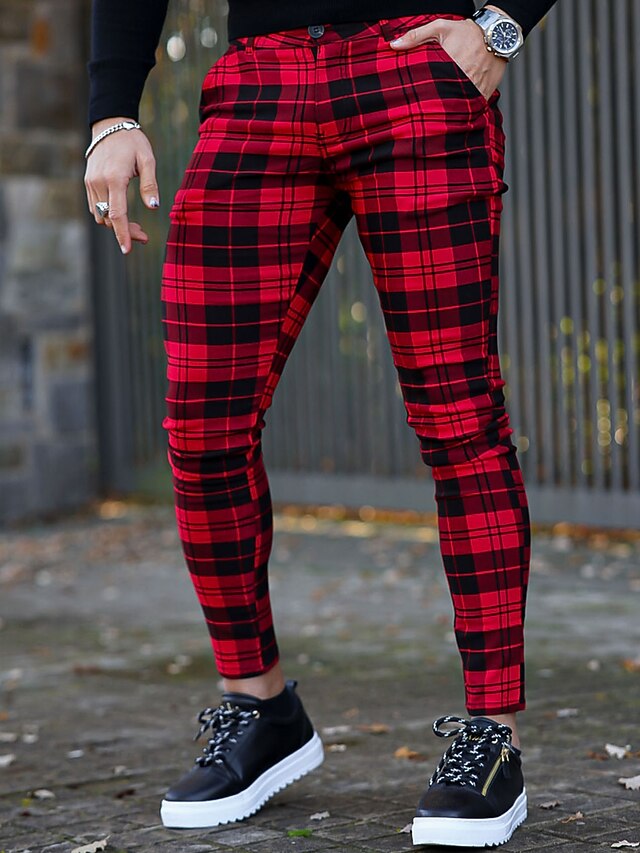More information about Men's Trousers Chinos Chino Pants Plaid Dress Pants Pocket Plaid Comfort Breathable Outdoor Daily Going out Fashion Streetwear White Red