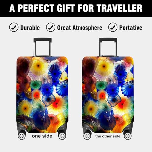 HOT ! Travel Luggage Cover Suitcase Protector Scratch-Resistant Fit Not Included Suitcase Iridescent Glass Flower Sea L-26-28in