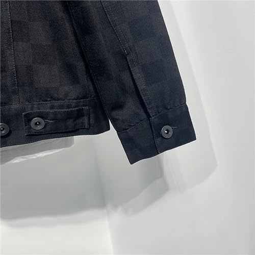 DGHM-JLMY Mens Casual Black Button Down Denim Jacket Spring Autumn Loose Lapel Coat Long Sleeve Denim Jacket 6
