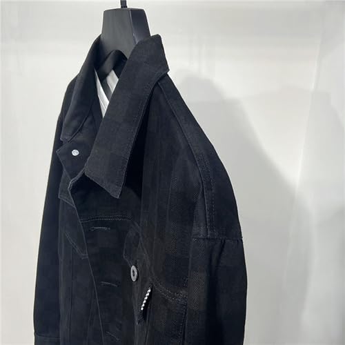 DGHM-JLMY Mens Casual Black Button Down Denim Jacket Spring Autumn Loose Lapel Coat Long Sleeve Denim Jacket 2
