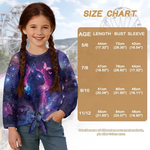 Suobstales Girls Tie Front Shirts Lightweight Sweatshirt Long Sleeve Crop Tops Pullover Crewneck Tees Tops Size 5-12 Years