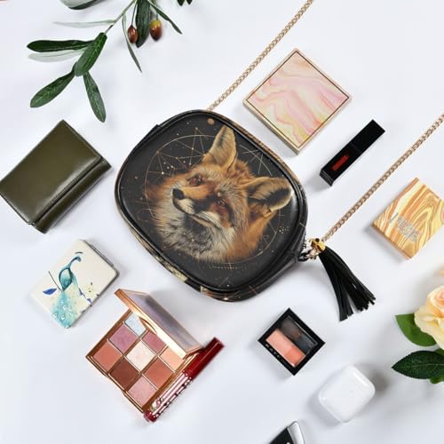 ALAZA Women's Fox Geometric Circles PU Leather Crossbody Bag Shoulder Purse with Tassel 1