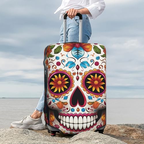 Colorful Sugar Skull Travel Luggage Cover Elastic Washable Suitcase Cover Protector Fashion Stretch Baggage Covers Dustproof Suitcase Sleeve Fits 18-32 inch Luggage, Black, X-Large