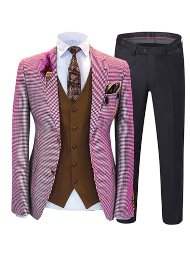 More information about Men Party Tuxedo Jacket Vest & Pant 3 Pieces Houndstooth Dogstooth Retro Plaid Check Notch Lapel Blazer Prom Suits