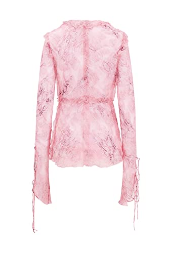 • Design: Cute ruched mesh two piece outfit, sleeveless design, relaxed flared sleeve, open back detail, 3d flower, low cut backless tube top, sheer mesh tie up cardigan crop top, ruffle tassel decoration, ruffle split mesh maxi dress, irregular ruffle trim mini skirt set, y2k fairy aesthietc outfits.