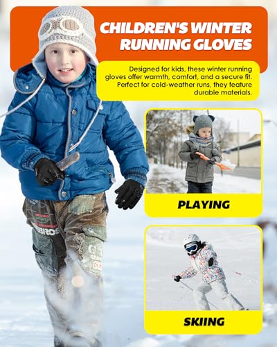 Kids Winter Running Glove Cold Weather Touchscreen Warm Gloves for Hiking Biking Glove for Childrens 4-12 Year Old 2