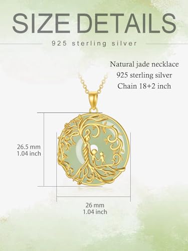 Gifts for Women Tree of Life Necklace 14k Gold Plated Sterling Silver Round Jade Jewelry for Women Mom Sister Birthday Christmas Gifts 4
