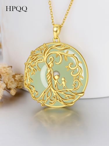 HOT ! Gifts for Women Tree of Life Necklace 14k Gold Plated Sterling Silver Round Jade Jewelry for Women Mom Sister Birthday Christmas Gifts