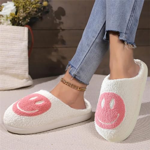 DABAUR Smile Face Slippers for Women and Men,cute Soft Plush Smile Slippers Retro Preppy Fuzzy Slip-On House Shoes Funny Happy Fluffy Cloud sliders with Memory Foam Slippers Cozy Indoor Outdoor 6