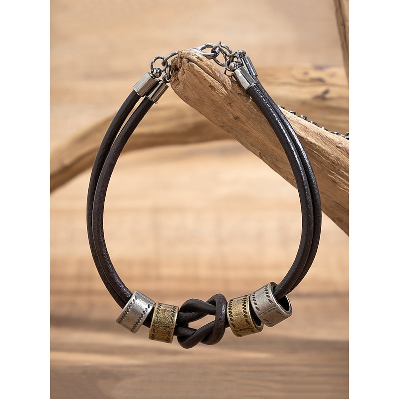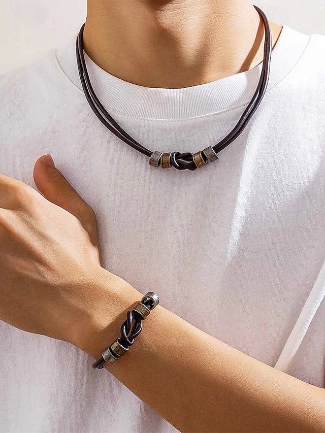 $14.99 - Men's Leather Necklace and Bracelet Set – Vintage Knot Design with Metal Accents, Adjustable Handmade Jewelry for Casual, Biker, and Boho Style, Perfect for Daily Wear and Gifts 2025. Shop for cheap Men's Jewelry online? Buy at lightinthebox.com on sale today!