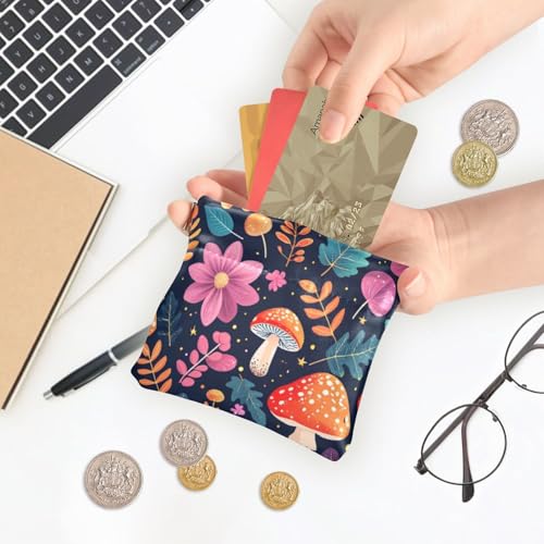 Flowers and Mushrooms Coin Purse Leather Pouch Change Purse, Squeeze Coin Pouch for Cards, Keys & Lipsticks, Unisex