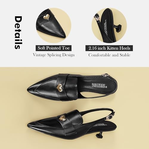 • 【𝐄𝐥𝐞𝐠𝐚𝐧𝐭 𝐏𝐨𝐢𝐧𝐭𝐞𝐝 𝐓𝐨𝐞】: These slingback kitten heels feature a classic pointed toe design that exudes timeless elegance and sophistication