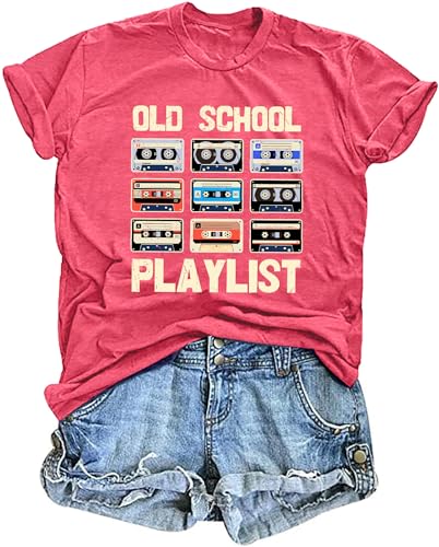 HOT ! LAZYCHILD 80s Shirt for Women 90s Shirts: Old School Playlist T-Shirt Cassette Tape Graphic 80s Music Concert Tee Tops