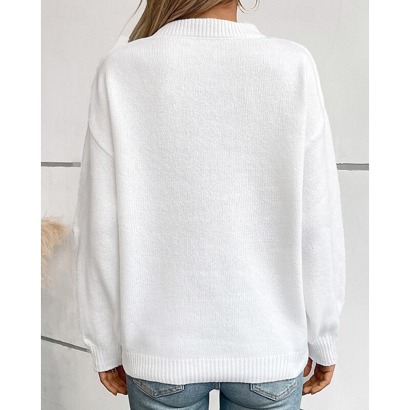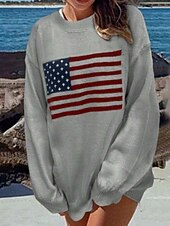 More information about Women's Sweater Pullover Casual Star Striped Ribbed Crew Neck Knitted Print Long Sleeve Regular Tops Knit Outdoor Holiday Weekend White Gray Winter
