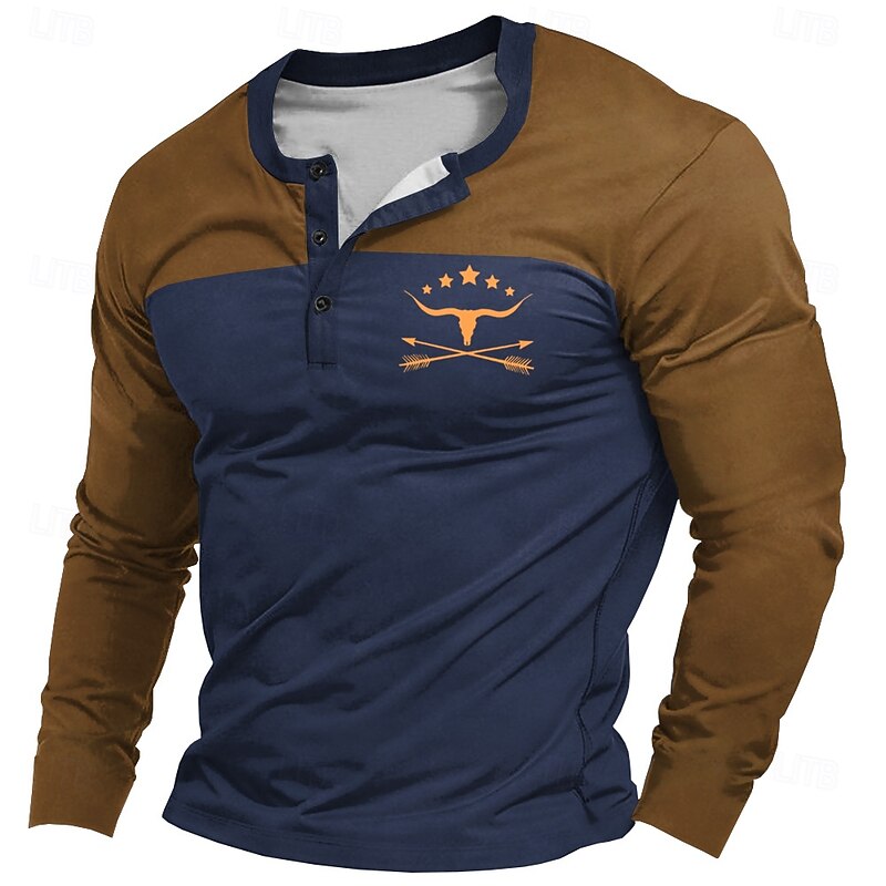 Why Choose Men's Graphic Color Block Logo Bull Henley Shirt Long Sleeve T shirt 3D Print Henley Shirt Fashion Designer snug Casual Daily Black Navy Blue Khaki Spring & Fall Clothing Apparel S M L XL XXL?