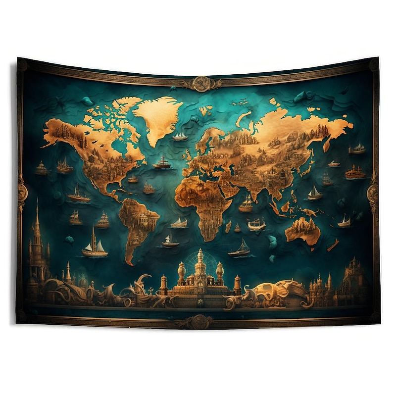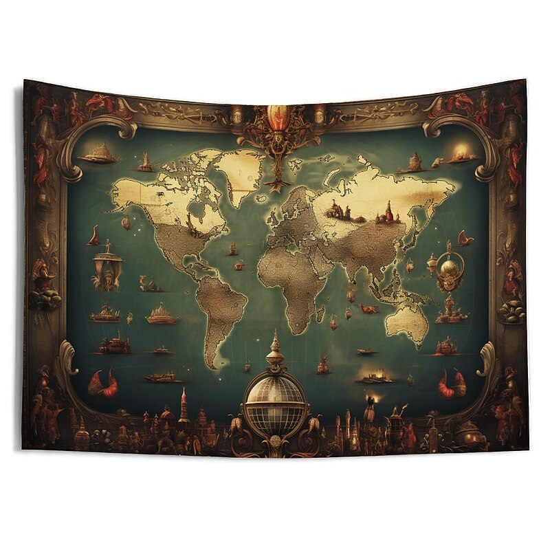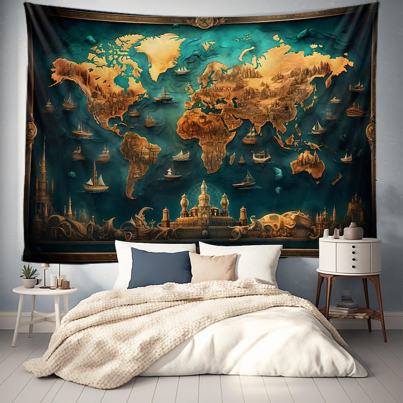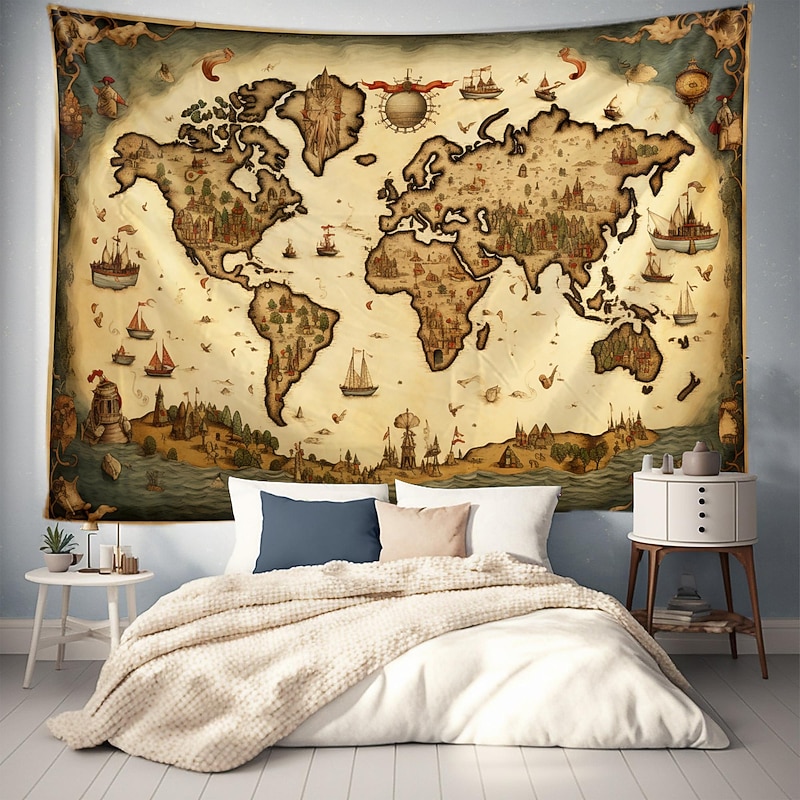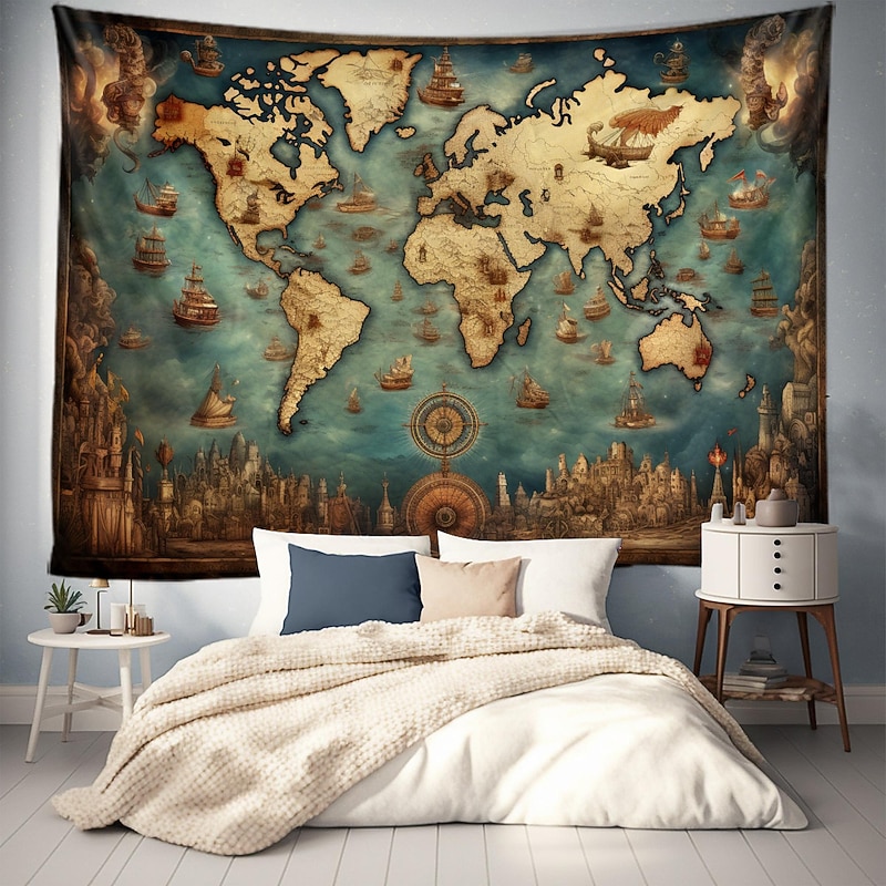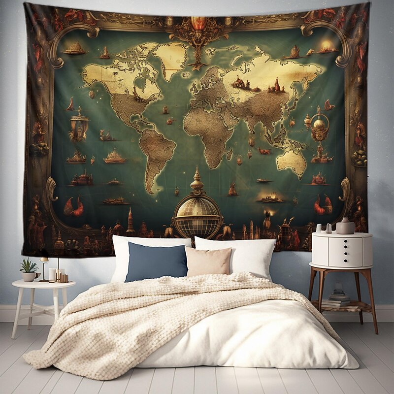 HOT ! International Map Vintage Hanging Tapestry Wall Art Large Tapestry Mural Decor Photograph Backdrop Blanket Curtain Home Bedroom Living Room Decoration
