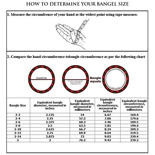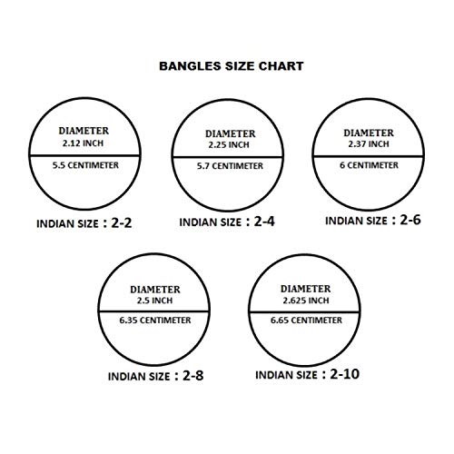 Item display length: 2.4 inchesMaterial: MetalMetal type: CopperClasp type: Slip onChain type: No ChainGem type: No gemstoneBrief content visible, double tap to read full content. Full content visible, double tap to read brief content. Bundles with this item Previous page Pack of 2 Sets of Bangles -29% $23.73 Pack of 2 Sets of Bangles -29% $25.63 Pack of 2 Sets of Bangles -40% $25.63 Pack of 2 Sets of Bangles -44% $25.63 Pack of 2 Sets of Bangles -14% $31.91 Pack of 2 Sets of Bangles -6% $32.99 Next page See all bundlesPlease confirm the bangle size using video, size chart, Or size guide. Kindly check Size/ Diameter of old bangle (and compare) before ordering to avoid disappointment. We offer many sizes from the smallest to largest. The color may slightly vary due to the photographic lighting sources.Set Content: Openable bangle set containing 2 pieces, Size: suitable for Indian Bangle Size 2-6 (7.46 Inches) and Size 2-8 (7.85 Inches) [Indian Medium to Large Handsize Bangle Set].Embellished with beads, crystal and rhinestones gives it a impeccable traditional ethnic cum contemporary look. A iconic fusion of exquisite craftsmanship.Ideal for any ethnic outfit like saree, bridal wear wedding or on party, festival dance or any special occasion or as novelty costume accessories.Ideal for Valentine, Anniversary, New Year, Christmas, Thanksgiving, Mother's Day, Women's Day