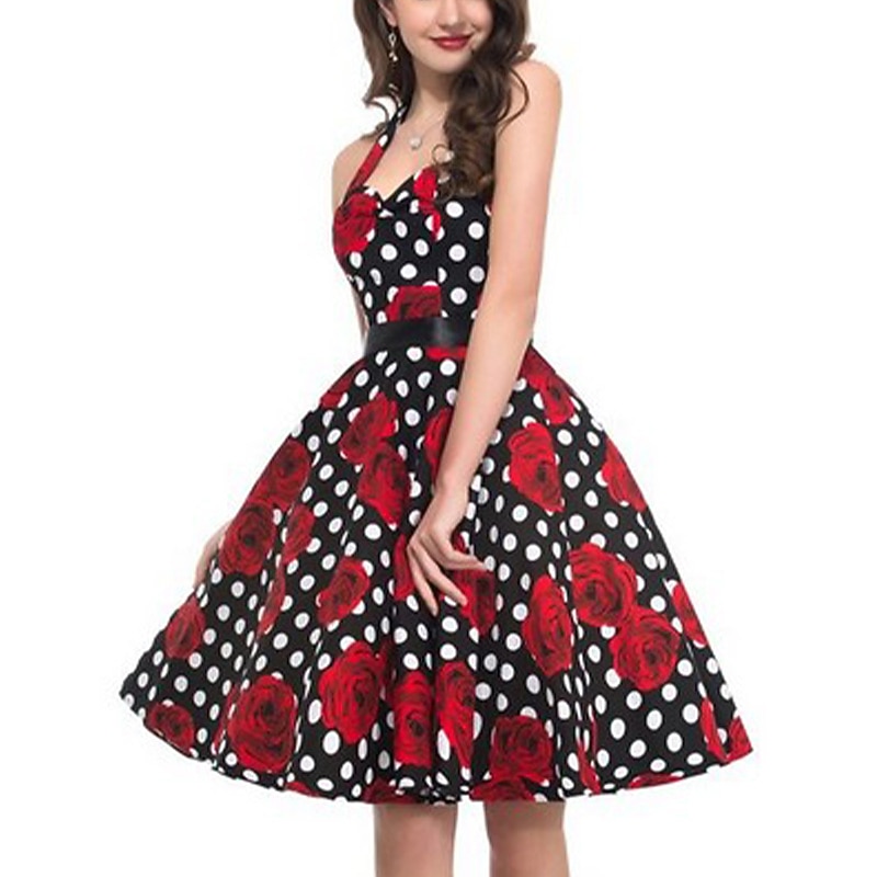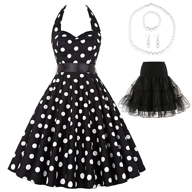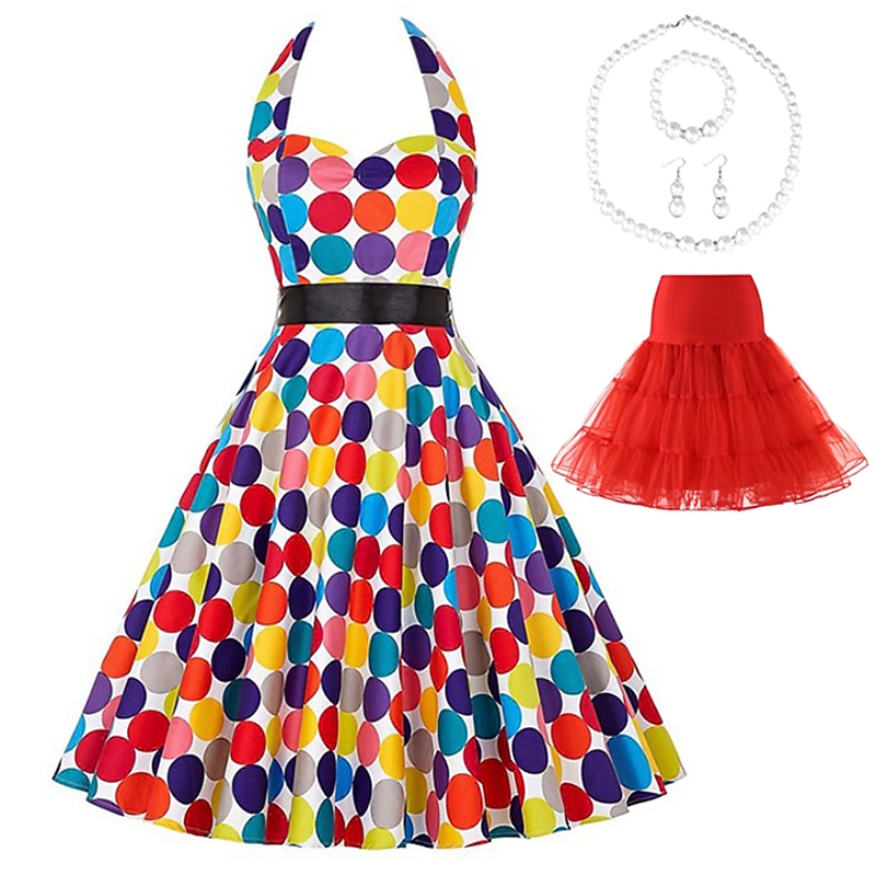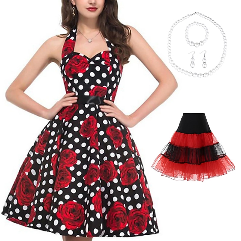 More information about Retro Vintage 1950s Grease Outfits Rockabilly Petticoat Hoop Skirt A-Line Dress Tutu Floral Polka Dot Fancy Dress Women's Party / Evening Masquerade Adults' Dress Earrings Necklace Spring & Summer