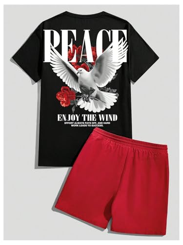 • Features: The men's clothing set showcases a white dove and red rose print on the t-shirt, paired with vibrant shorts for a stylish look