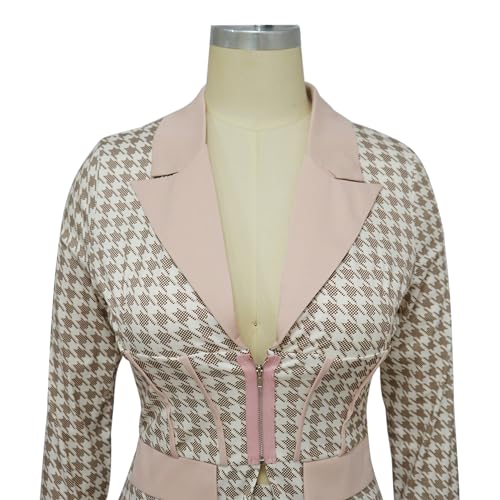 Why Choose Recious Womens Sexy 2 Pieces Houndstooth Printed Blazer Jackets Bodycon Pants Party Clubwear Tracksuit Outfits Suit Set?