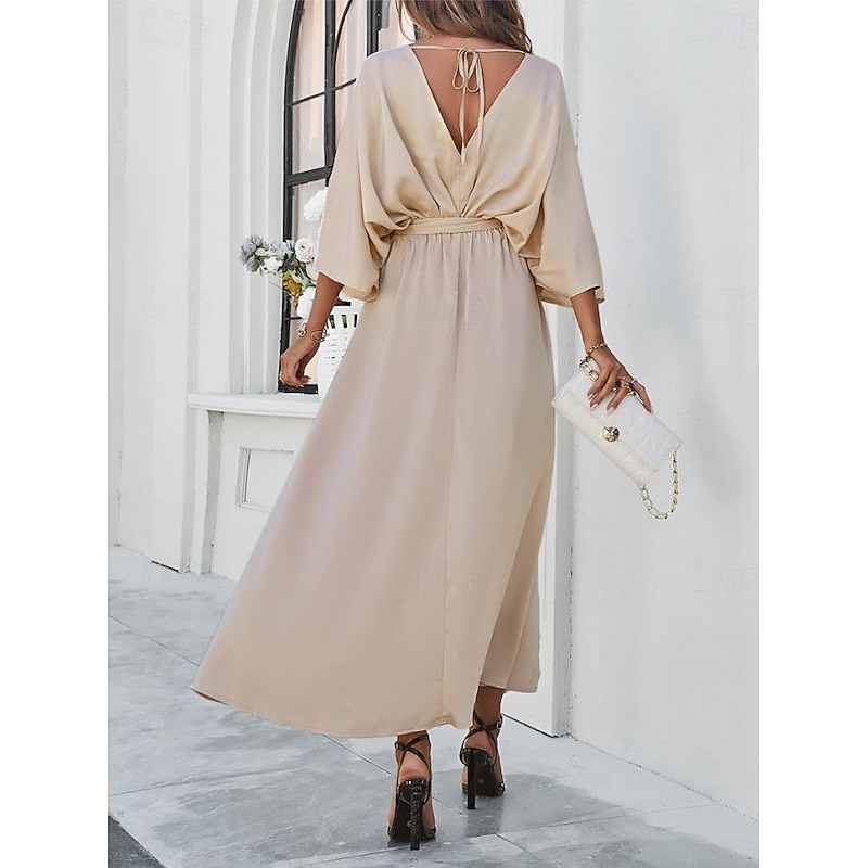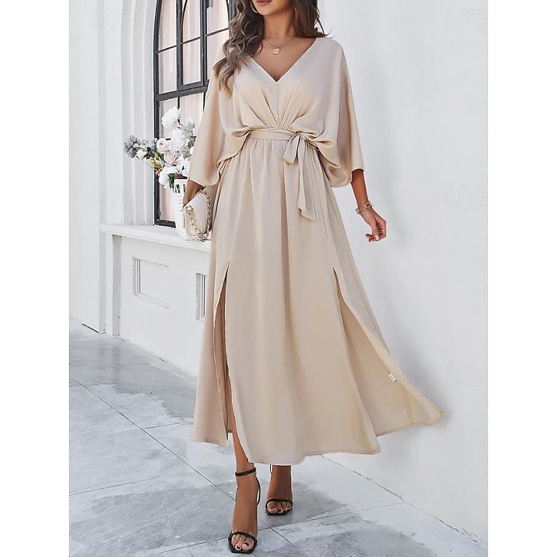 Women's Tiered Dress Maxi Dress Split Thigh Party Formal V Neck 3/4 Length Sleeve Batwing Sleeve Black Wine Green Color