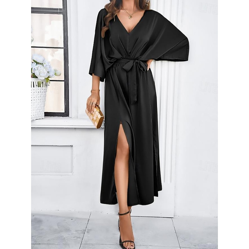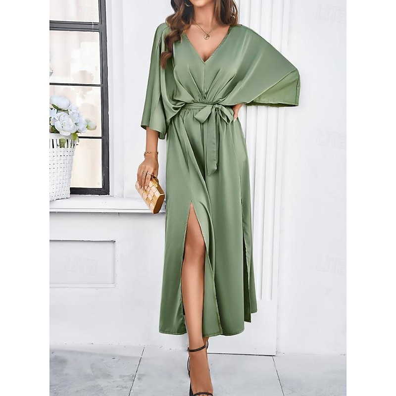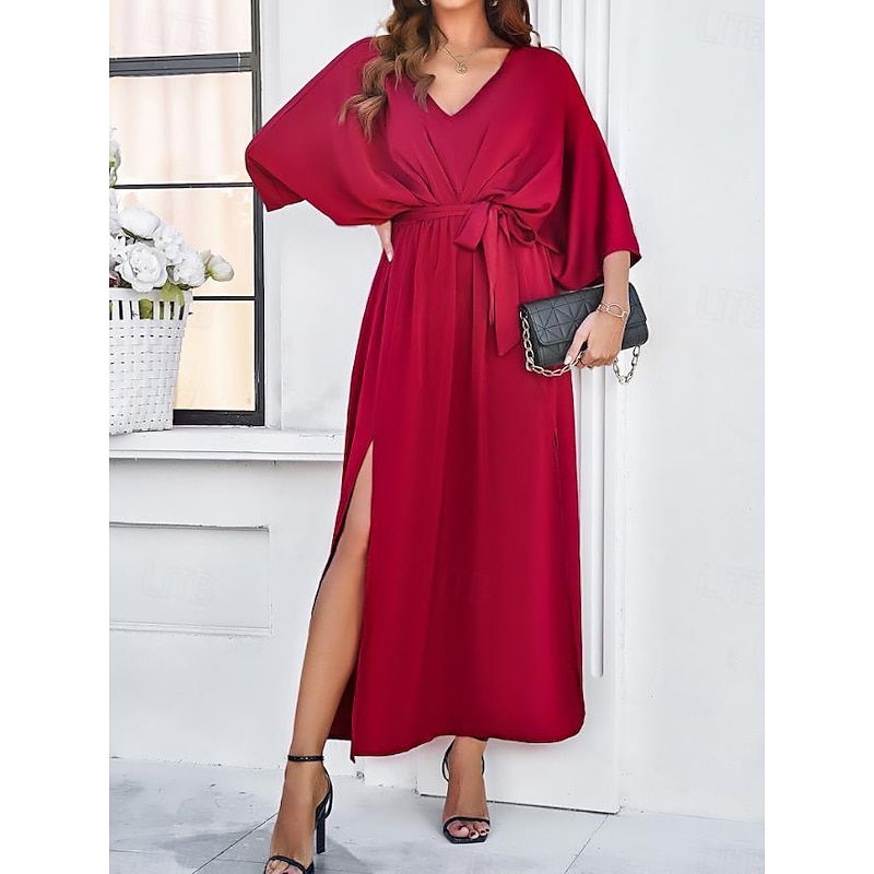 More information about Women's Tiered Dress Maxi Dress Split Thigh Party Formal V Neck 3/4 Length Sleeve Batwing Sleeve Black Wine Green Color