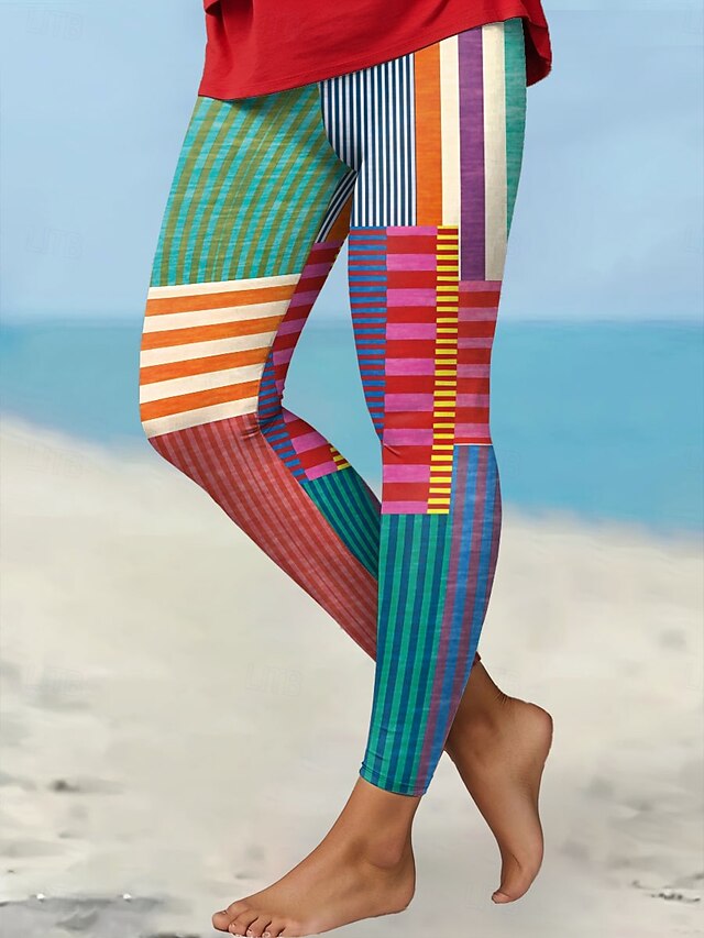 More information about Women's Leggings Vacation Vintage Fashion Ankle-Length High Waist Graphic Geometric Printing Soft Breathable Micro-elastic Outdoor Daily Robin's Egg Blue Red Amethyst Spring Fall Winter Slim Fit