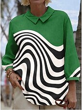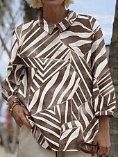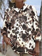 More information about Women's Blouse Long Sleeve Peter Pan Collar Casual Graphic Geometric Abstract Vintage Tropical Daily Collar Regular Tops Daily Buttons Print Light Brown Brown Green Summer Spring