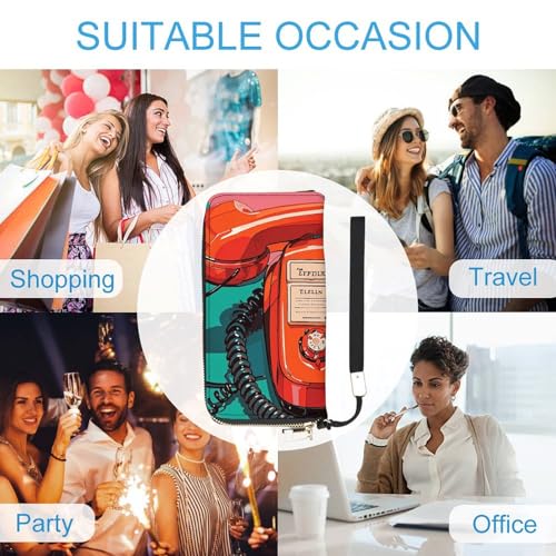 England UK Retro London Telephones Ladies' Leather Wallet With Hand Strap Slim Vertical Purse Wallets Card Case Long Zip Around Long Wallet Credit Cards Holder Phone Clutch