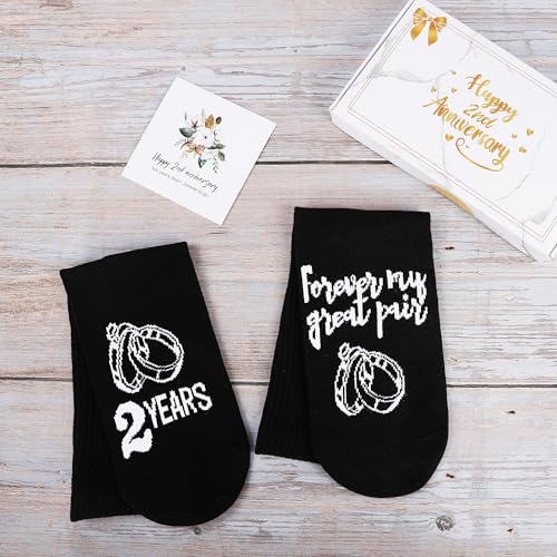 2nd Anniversary Cotton Gift “Two Years, Forever My Great Pair” A Pair of Socks with Card, Gift Box, Unique 2 Year Anniversary Cotton Gift for Him,Her,Husband,Couples 2