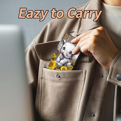 Women's RFID Blocking Wallet PU Leather Slim Bifold Wristlet Clutch with Large Capacity,16 Card Slots & Zipper Coin Purse Pocket Ladies Travel Purse Wristlet,Wooden Sunflowers Elephant 3