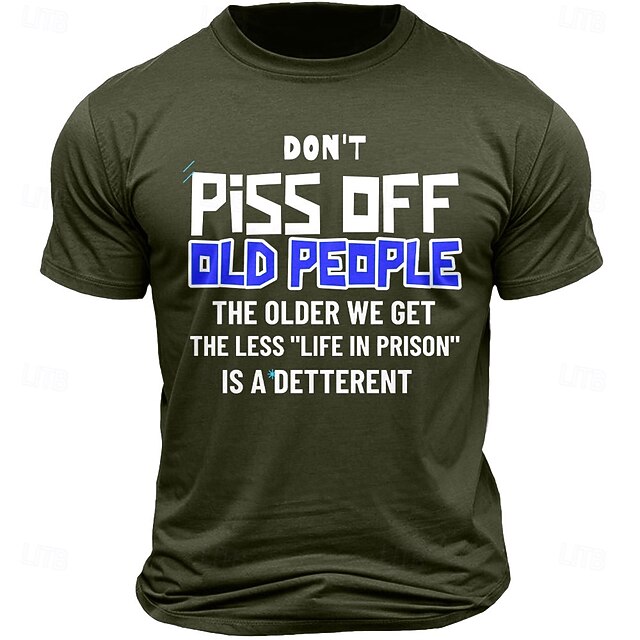 Men's Funny 'Don't Piss Off Old People' Graphic Short Sleeve T-Shirt | Edgy Humor Statement 9