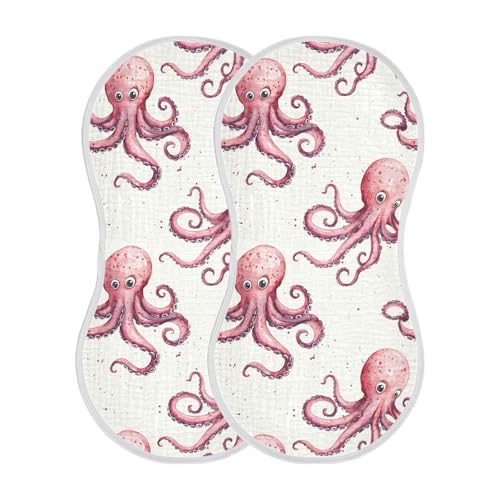 vvfelixl Pink Octopus Burp Cloths for Baby Boy Girls Baby Washcloths Burp Rags 1 Pack 2
