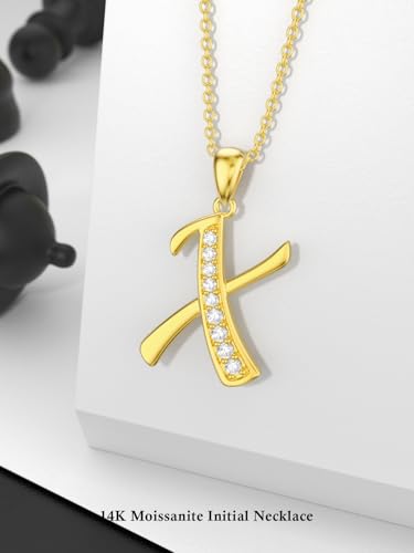 HOT ! 14k Gold Initial Necklace for Women, Solid Gold Moissanite Letter Pendant Necklaces Jewelry for Her Birthday Valentines Day Gifts for Mom Wife Christmas Gifts for Girlfriend Sister