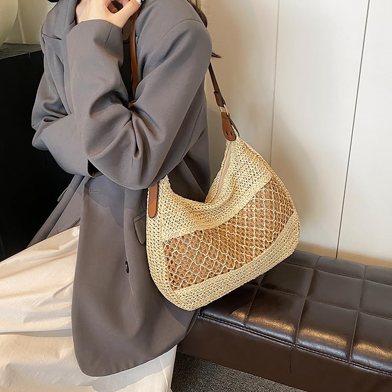 • Premium Straw Material: Crafted from high-quality straw fabric, this hollow shoulder bag offers softness, durability, and ease of maintenance. It provides a comfortable touch while being easy to clean.
