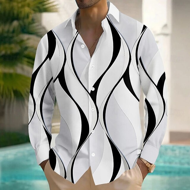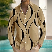 Men's Geometric Waves Shirt Button Up Shirt Long Sleeve Fashion Casual Outdoor Daily Streetwear Spring Fall Turndown 3D Print Linen Like Shirt White Blue Khaki 9