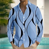 More information about Men's Geometric Waves Shirt Button Up Shirt Long Sleeve Fashion Casual Outdoor Daily Streetwear Spring Fall Turndown 3D Print Linen Like Shirt White Blue Khaki