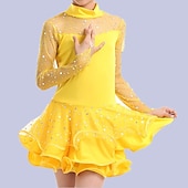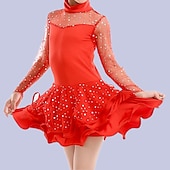 More information about Latin Dance Kids' Dancewear Dress Pure Color Paillette Tulle Girls' Performance Long Sleeve Elastane Tulle