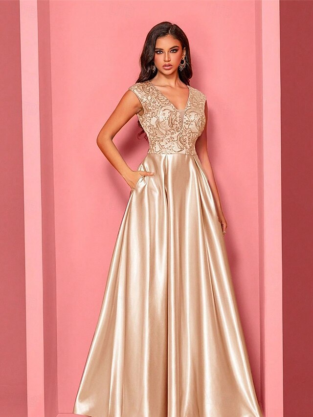 More information about A-Line Quinceanera Dresses Elegant Dress Formal Wedding Floor Length Sleeveless V Neck Polyester with Pleats