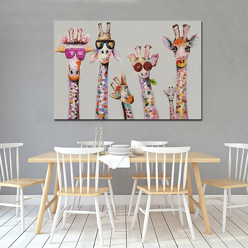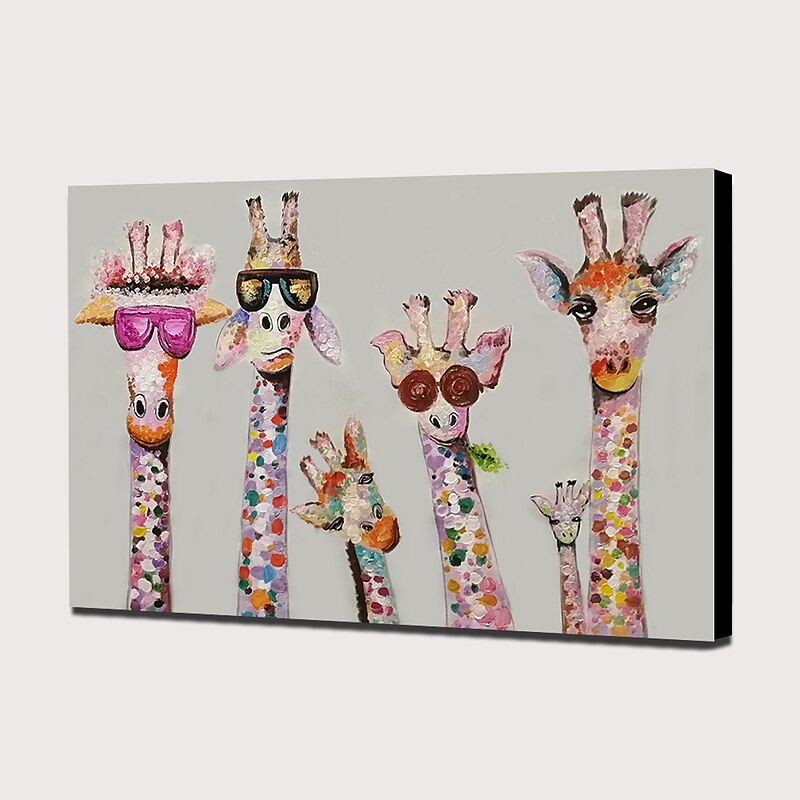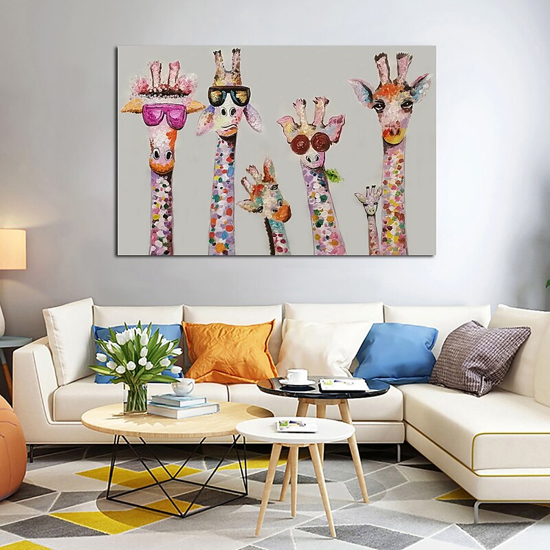 Nursery Oil Painting Handmade Hand Painted Wall Art Cartoon Colorful Giraffe Animal Home Decoration Décor Rolled Canvas No Frame Unstretched 1