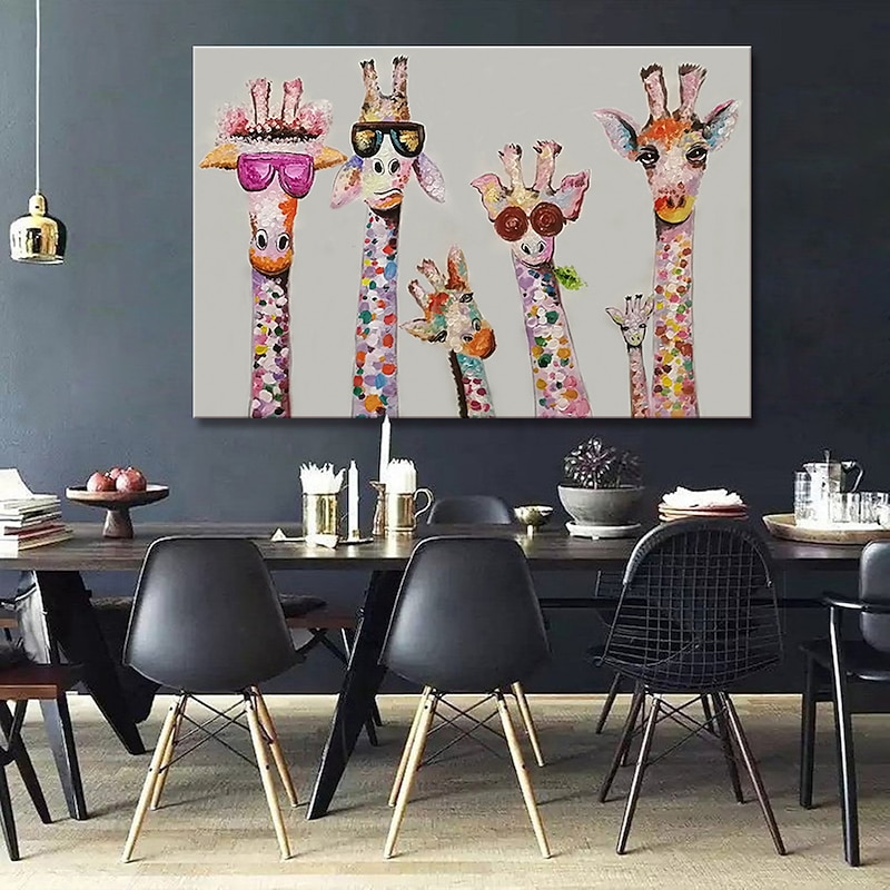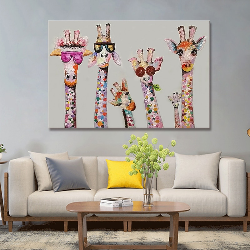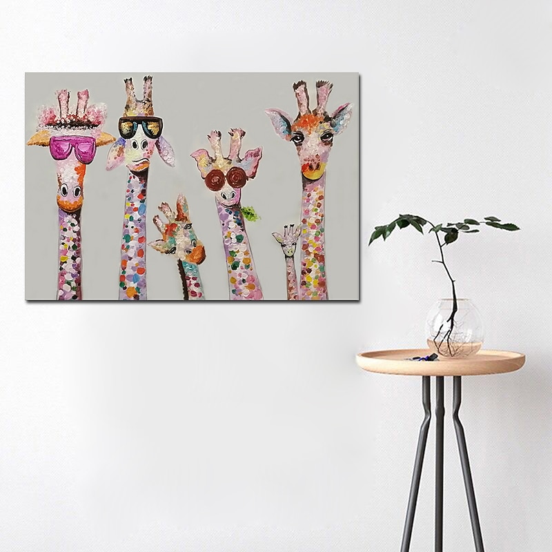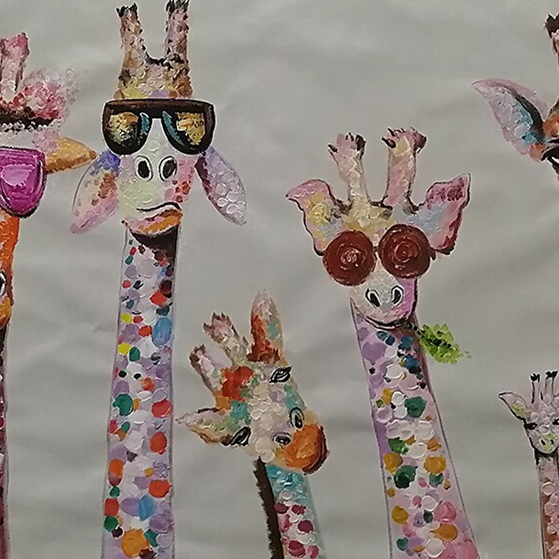 More information about Nursery Oil Painting Handmade Hand Painted Wall Art Cartoon Colorful Giraffe Animal Home Decoration Décor Rolled Canvas No Frame Unstretched